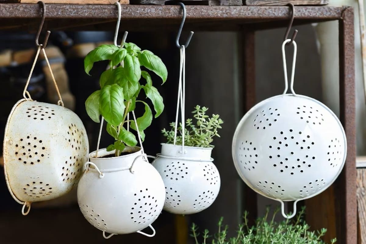 Mas não é apenas prático: o escorredor dá um toque original e adapta-se a qualquer espaço. Pode colocá-lo sobre uma mesa, pendurá-lo com cordas ou arames, ou movê-lo de acordo com a luz que as suas plantas precisam. Os modelos metálicos ficam ótimos em ambientes rústicos ou industriais, enquanto os de plástico ou esmaltados dão cor e podem ser personalizados com tinta para exteriores.Assim pode ficar o seu espaço verde (Foto: Grok).